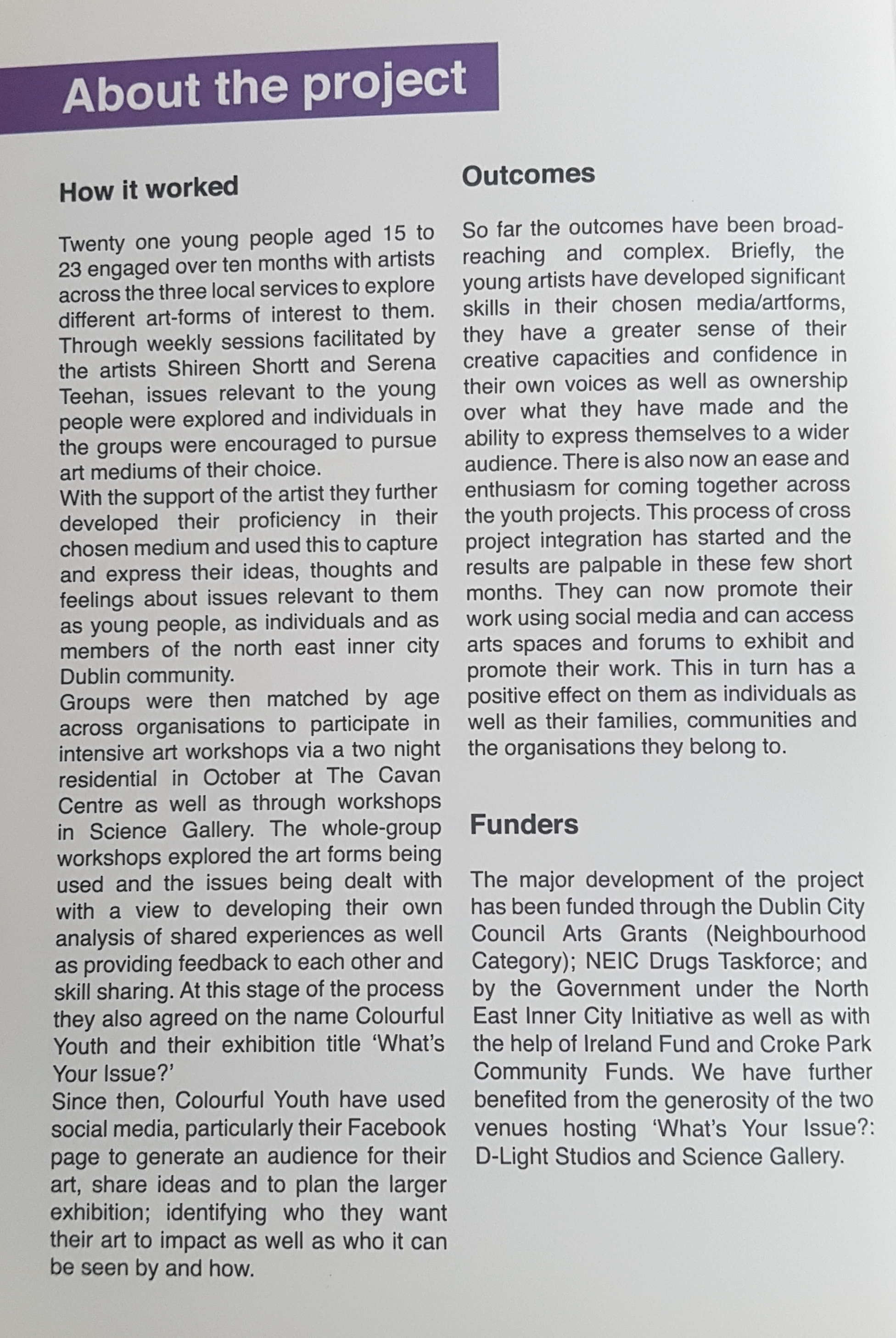 Crinan Youth Project Unit 5, The Steelworks, Foley St., Dublin 1